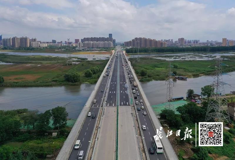 6月6日,武漢北大門——岱黃高速府河大橋綜合整治提升工程全部完工,新建橋梁連同老橋(老橋兩側(cè)各加寬兩車道)形成雙向八車道,當日15時全面對社會開放。