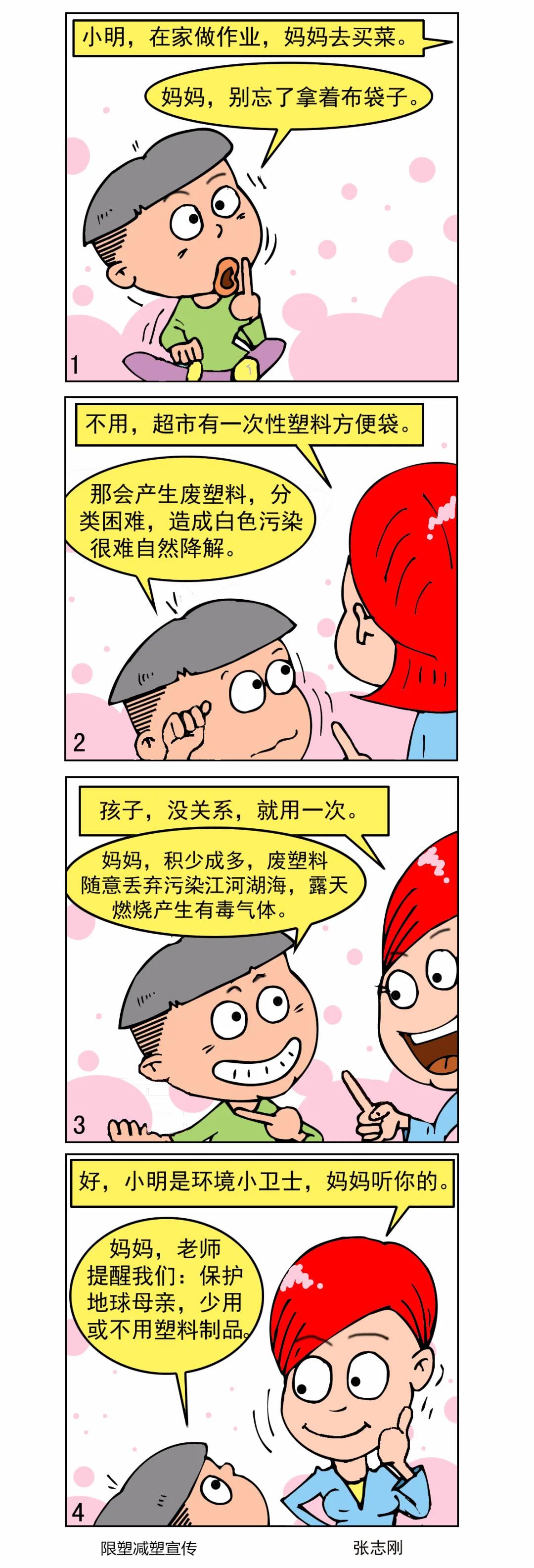 近日,國(guó)家發(fā)展改革委、生態(tài)環(huán)境部、工業(yè)和信息化部、住房城鄉(xiāng)建設(shè)部、農(nóng)業(yè)農(nóng)村部、商務(wù)部、文化和旅游部、市場(chǎng)監(jiān)管總局、供銷合作總社等九部門聯(lián)合印發(fā)《關(guān)于扎實(shí)推進(jìn)塑料污染治理工作的通知》,對(duì)進(jìn)一步做好塑料污染治理工作,特別是完成2020年底階段性目標(biāo)任務(wù)作出部署。中華環(huán)保聯(lián)合會(huì)作為環(huán)保社會(huì)組織,在生態(tài)環(huán)境部宣傳教育司的指導(dǎo)下,設(shè)計(jì)制作“限塑減塑”宣傳漫畫產(chǎn)品,引導(dǎo)公眾參與,傳播“限塑減塑”知識(shí),倡導(dǎo)少用或不用塑料制品的綠色生活好習(xí)慣。